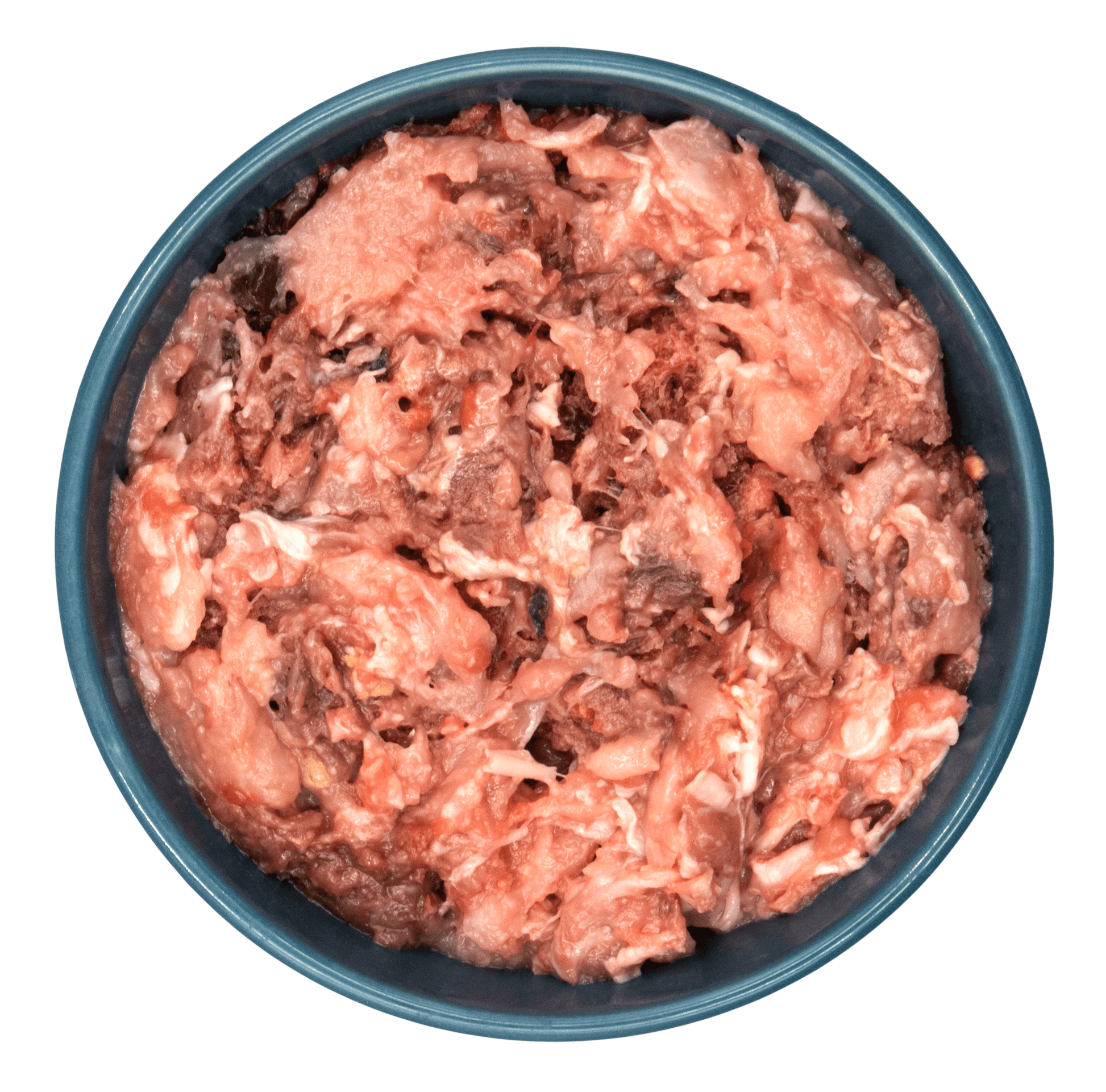 - Carne de Equino, carne y hueso de Conejo, vísceras de Equino (corazón, riñón, hígado, pulmón), grasa de Equino, Calcio, Colina, Magnesio, Zinc, Alga Kelp, Vitamina E, Pantotenato de Calcio, Manganeso, Vitamina D.